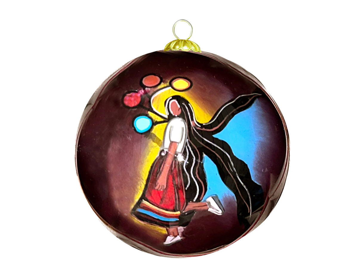 Glass ornaments are 75mm in diameter and are individually packaged in a box. Information about the artist are featured on a bio card.