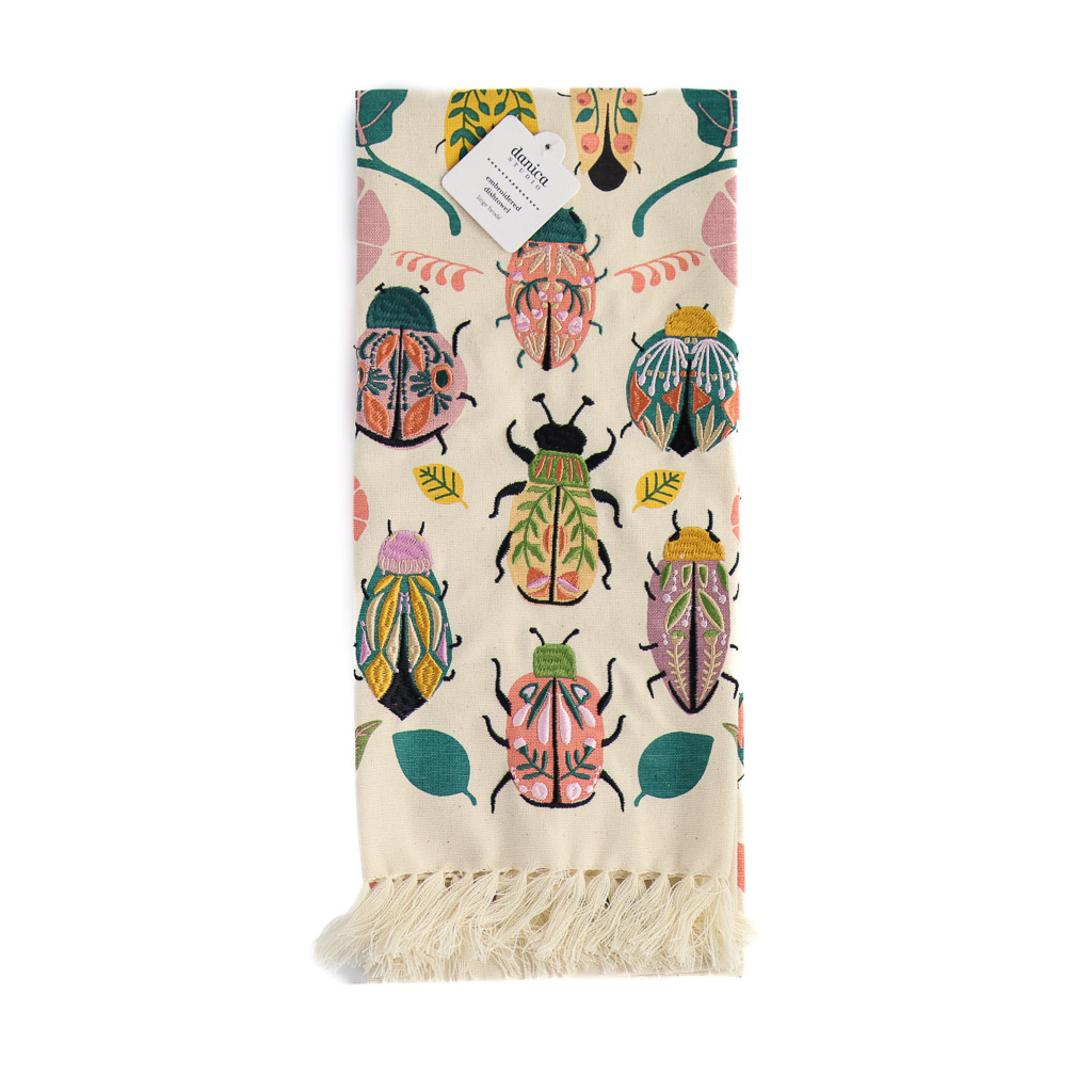 Ensure all your culinary creations come to fortunate fruition by accessorizing your kitchen with this multicolored Amulet Embroidered Dishtowel. Insects, reptiles, flowers and feathers in a gorgeous array of rich hues weave a powerfully protective spell over your cooking efforts, and tasseled trim adds a lighthearted touch.