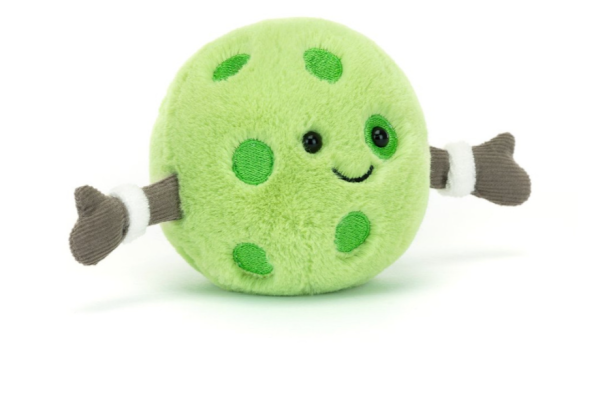 A perky green go-getter who is constantly ready for a game (or two), Amuseables Sports Pickleball by Jellycat loves sports so much she’s also a part-time umpire!
