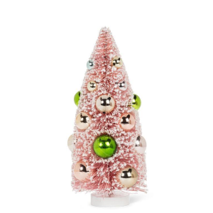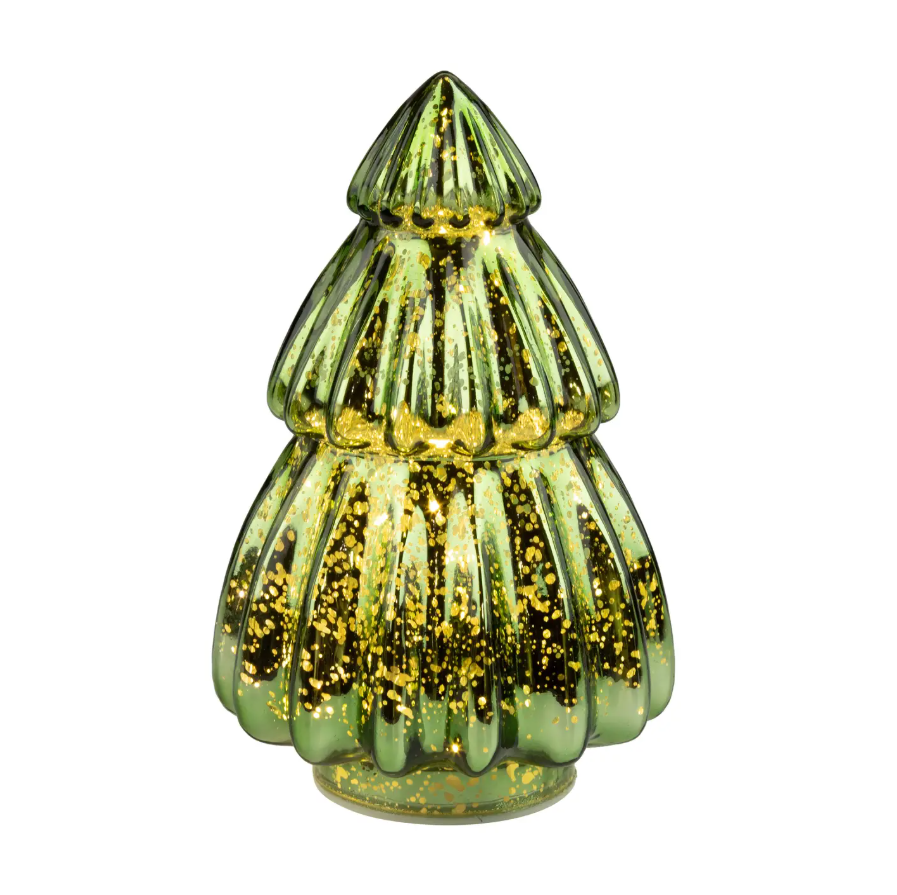 Shiny antique green glass tiered tree table piece, LED lights, 6.5 in.