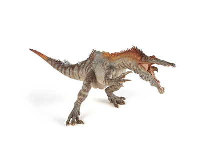 Baryonyx is a large carnivorous dinosaur that lived in Europe around 125 million years ago, during the Early Cretaceous period. Nearly 10 meters long, it is recognizable by its elongated snout lined with fine teeth, similar to that of crocodiles.