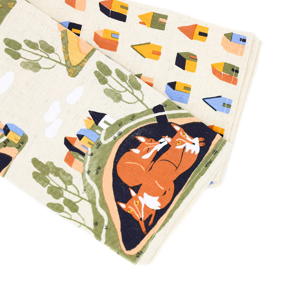 Take your nesting inclinations to the next level by ornamenting your kitchen with this pair of Burrow Dishtowels. Human families stay warm and cozy in their protective houses above ground, while down below, endearing wildlife creatures find refuge from the elements.