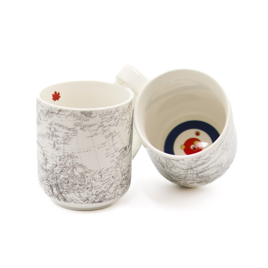 Show off your Canadian pride and passion for curling with this striking Curling/Map of Canada Mug. An Abbott exclusive, Canadian artist Doug Jackson’s line of products inspired by vintage maps and photographs – features an authentic antique map of Canada on the outside, and a diagram of the house (complete with winning shot rock) on the bottom of the interior.