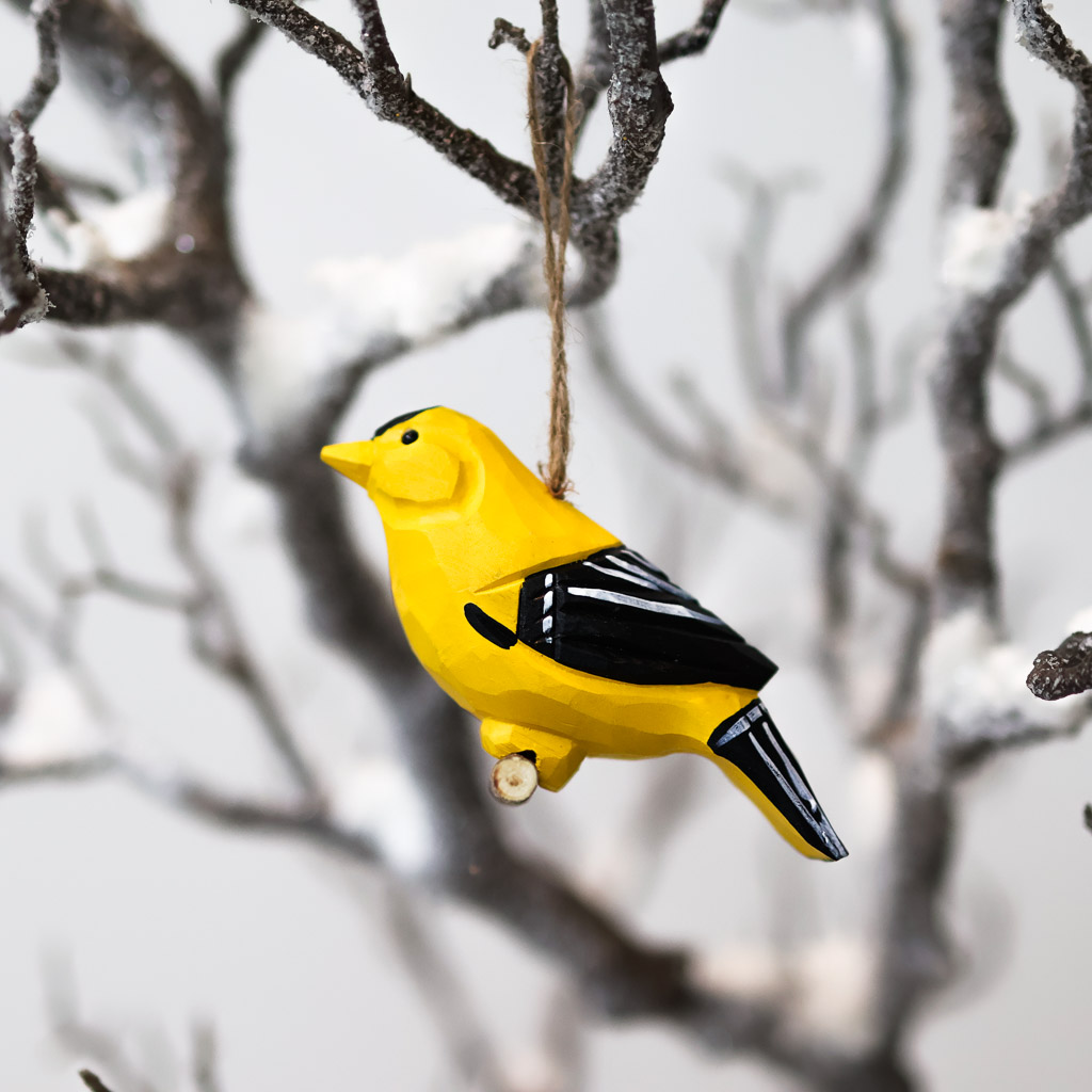 Bring a fun and folksy touch to your holiday decor with this carved Yellow Finch Ornament.
