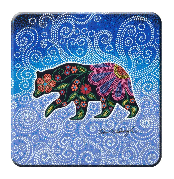 This painting is inspired by Indigenous legends about bears being in the stars. The shooting star represent the “good path”.