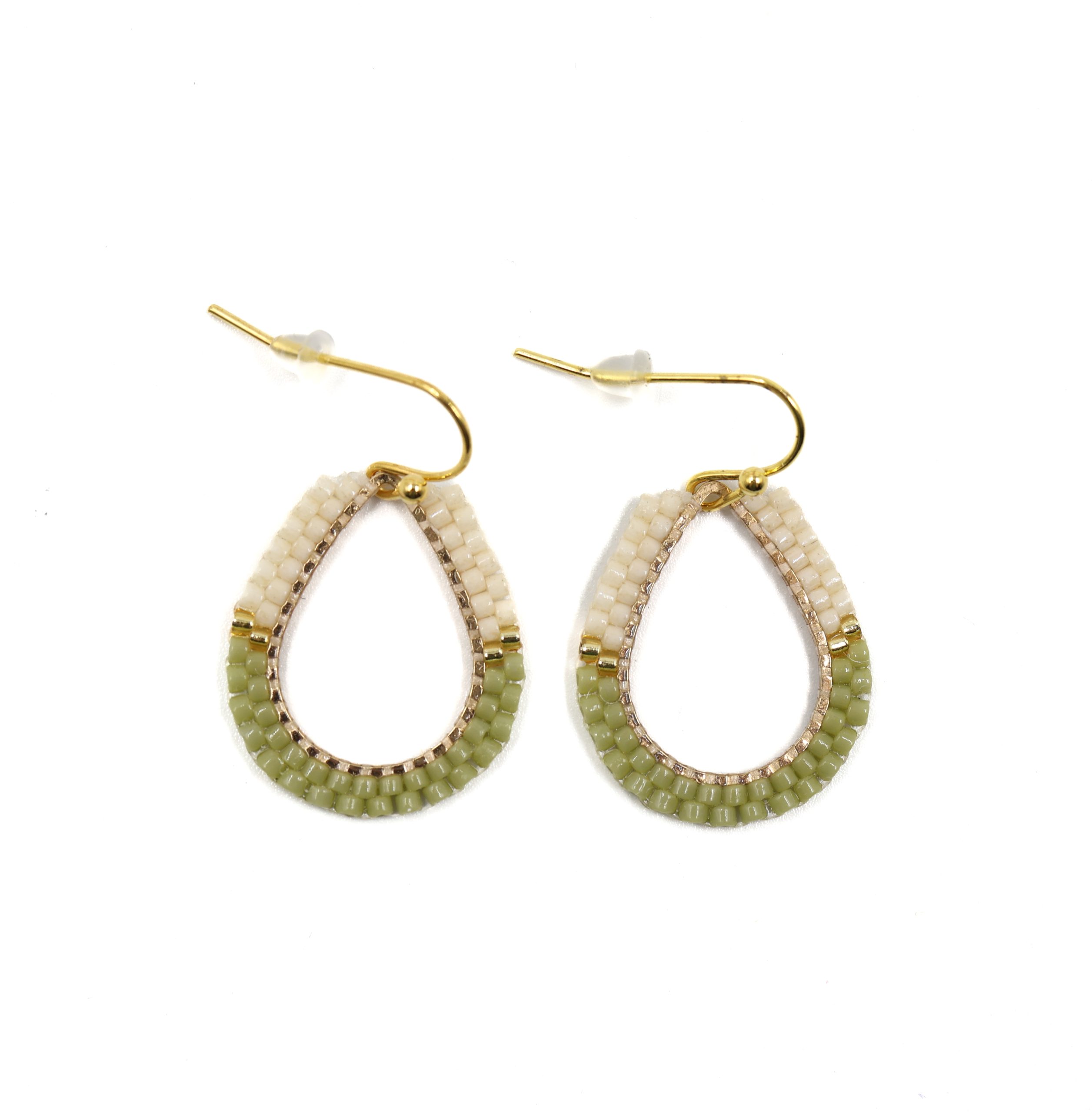 Cream & Sage Teardrop Earrings by Métis Girl Beads