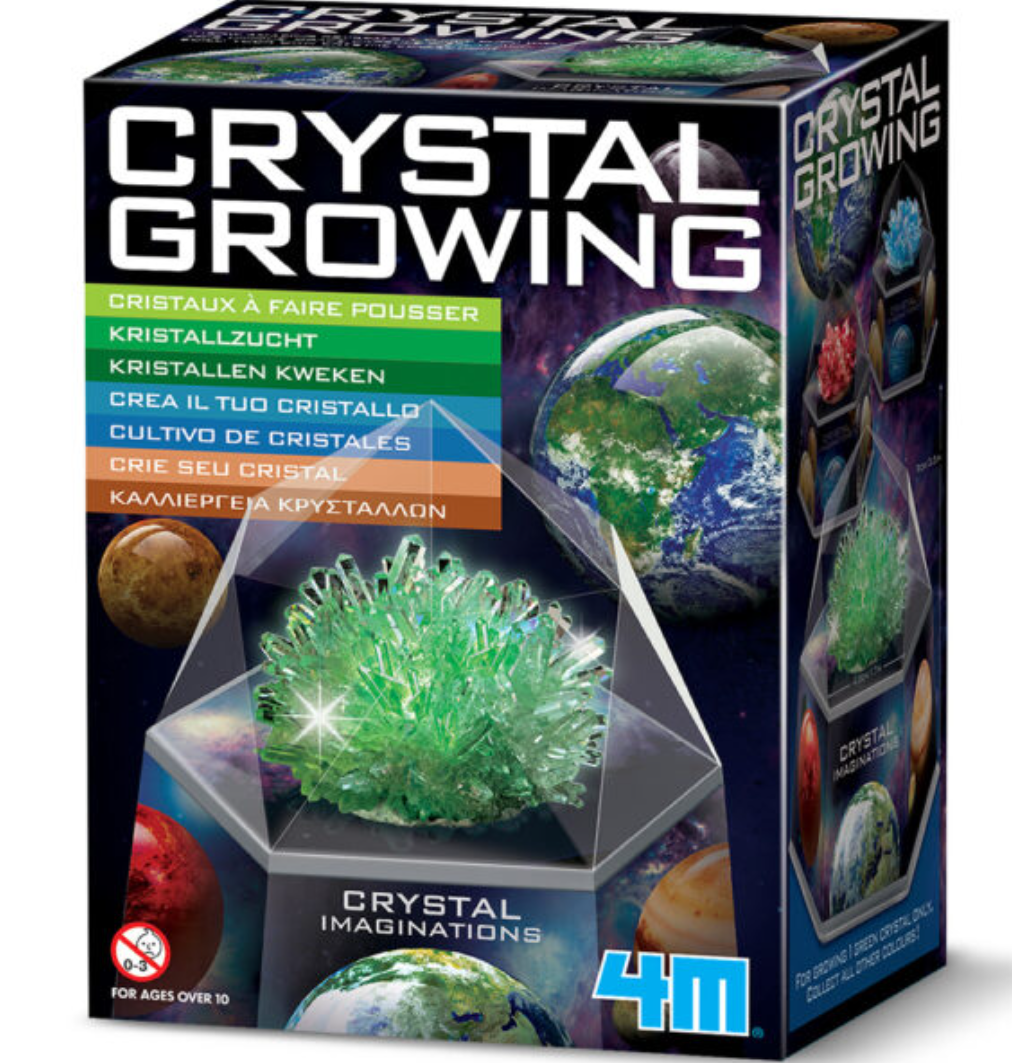 Grow amazing crystals with our Crystal Growing Kit in Green. Exhibit them with this unique space capsule display and build your own crystal collection! Fill the container with water, add the base and seeding compounds, then wait 5-7 days for the crystal to form. When your crystal has stopped growing, place it in the cool display to show friends & family.