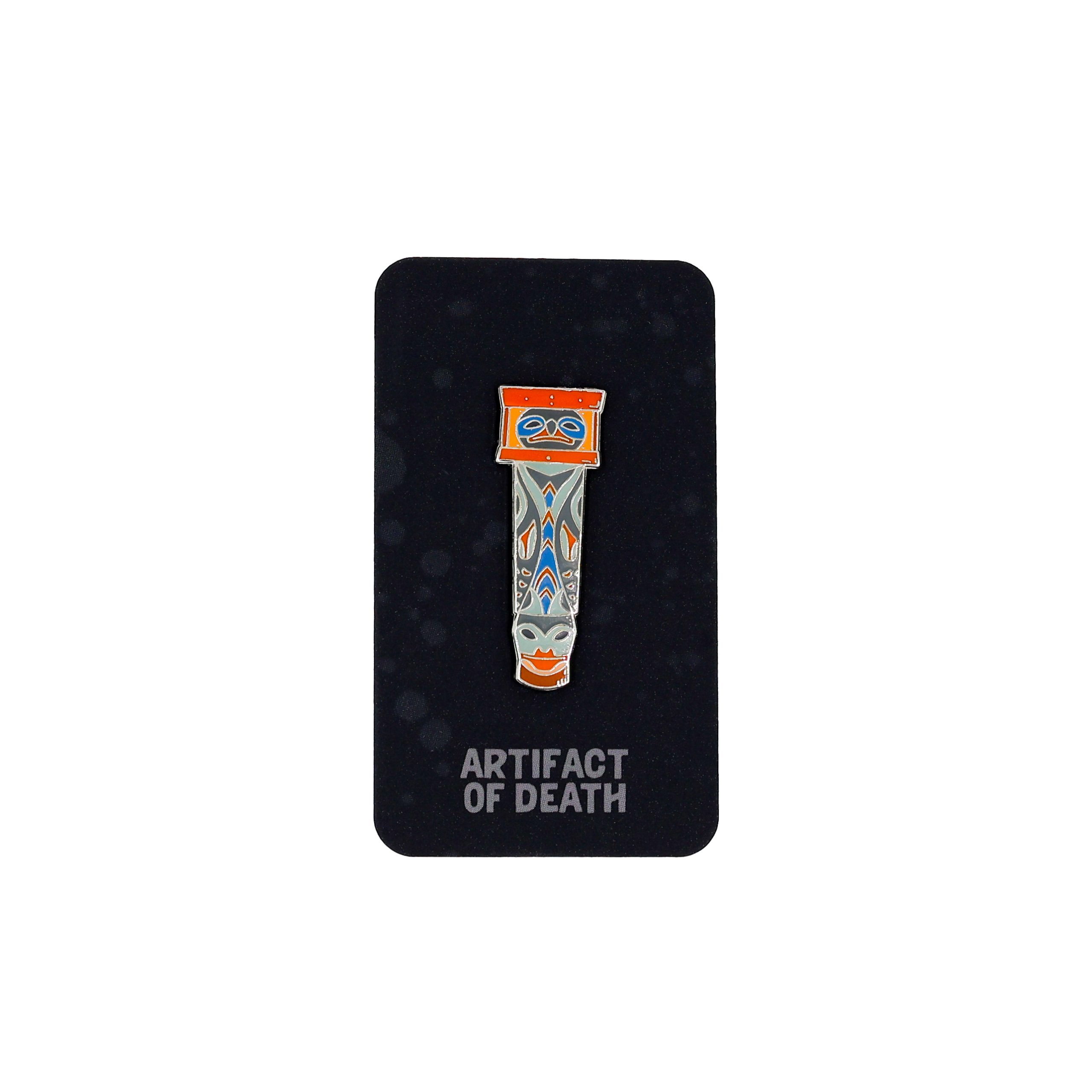 A Mortuary Pole pin created exclusively for the Royal Alberta Museum’s exhibition: Death: Life’s Greatest Mystery by local artist Weird Neighbor.