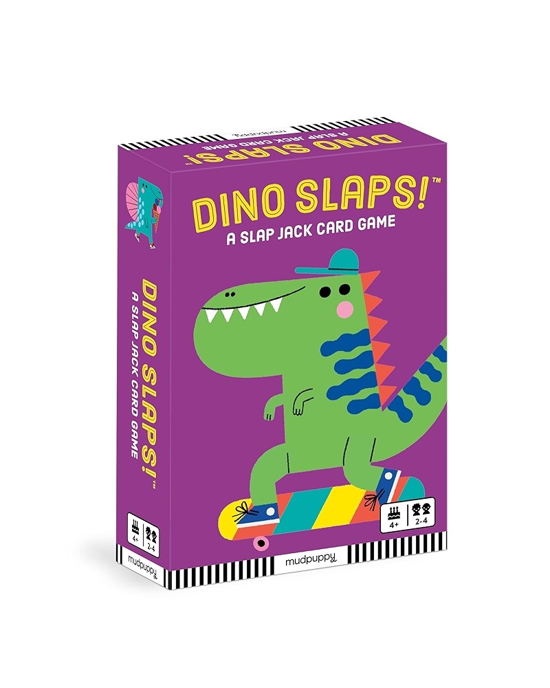 A unique twist on the classic Slap Jack card game, Dino Slaps! from Mudpuppy features bright and colorful illustrations of a wide range of prehistoric animals for hours of family fun. Packaged in a sturdy box, Dino Slaps! is the perfect on-the-go travel game.