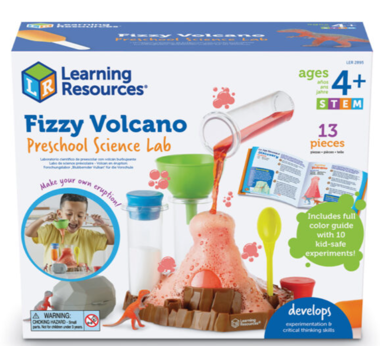Using tools like this set’s volcano flask, test tubes, funnel, and dinosaur fossil maker, kids can complete the amazing experiments found within the full-color guide.