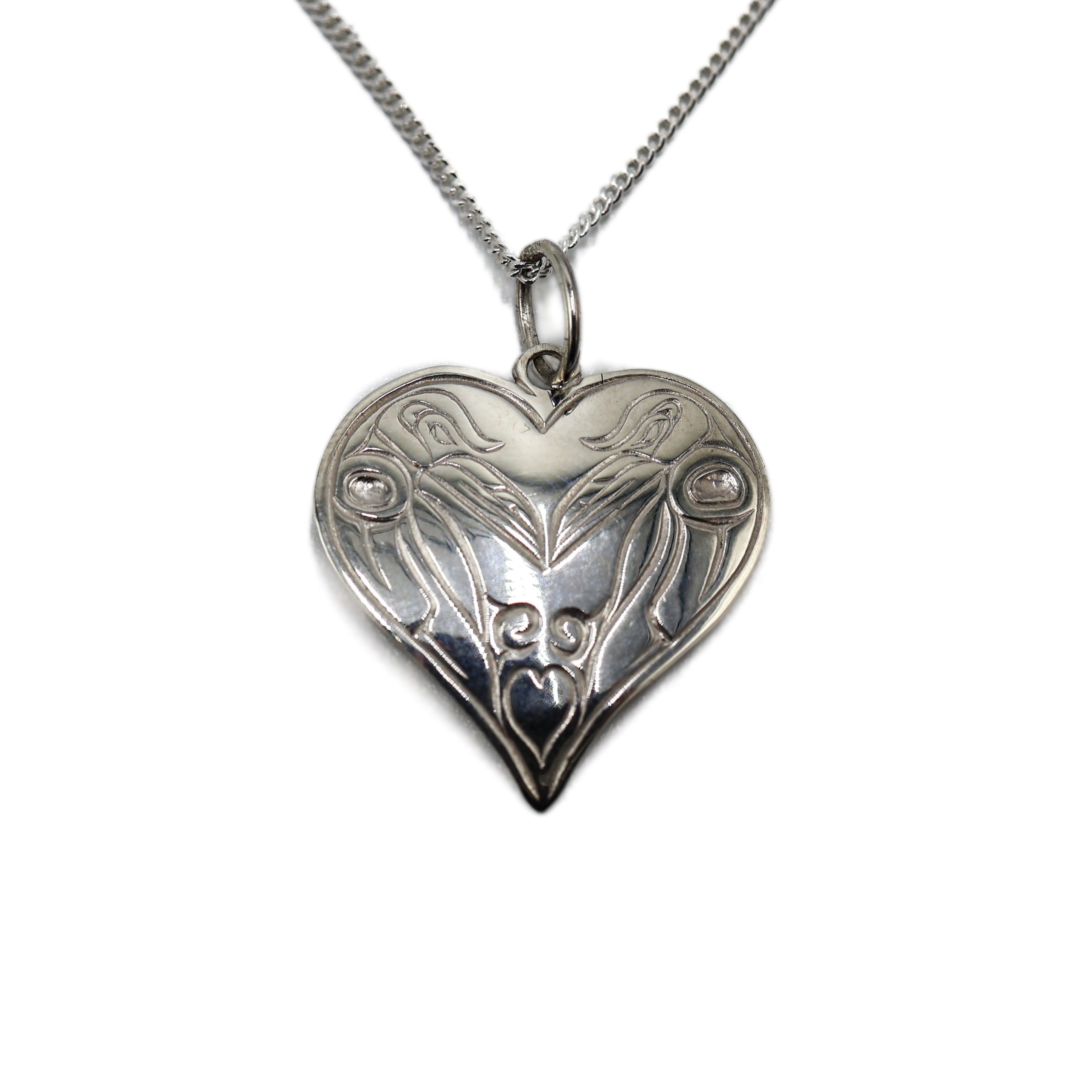The raven is a very mischievous animal, and he is also a messenger. One of the smartest birds in the animal kingdom. This design represents two partners coming together who will be connected for life. They are playful and have a good sense of humor. The heart in between the ravens represents a strong bond for life.
