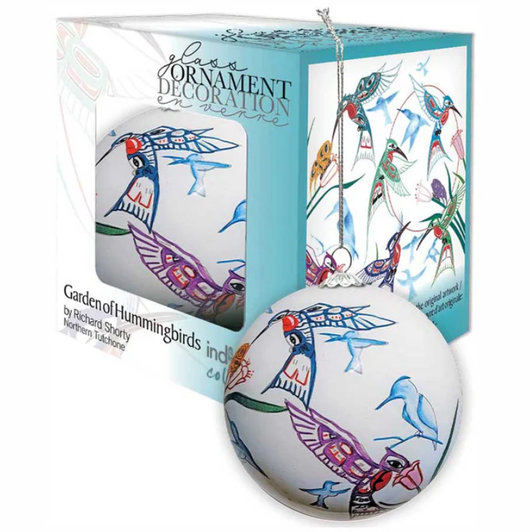 Garden of Hummingbirds Glass Christmas Ornaments by artist Richard Shorty – Northern Tutchone