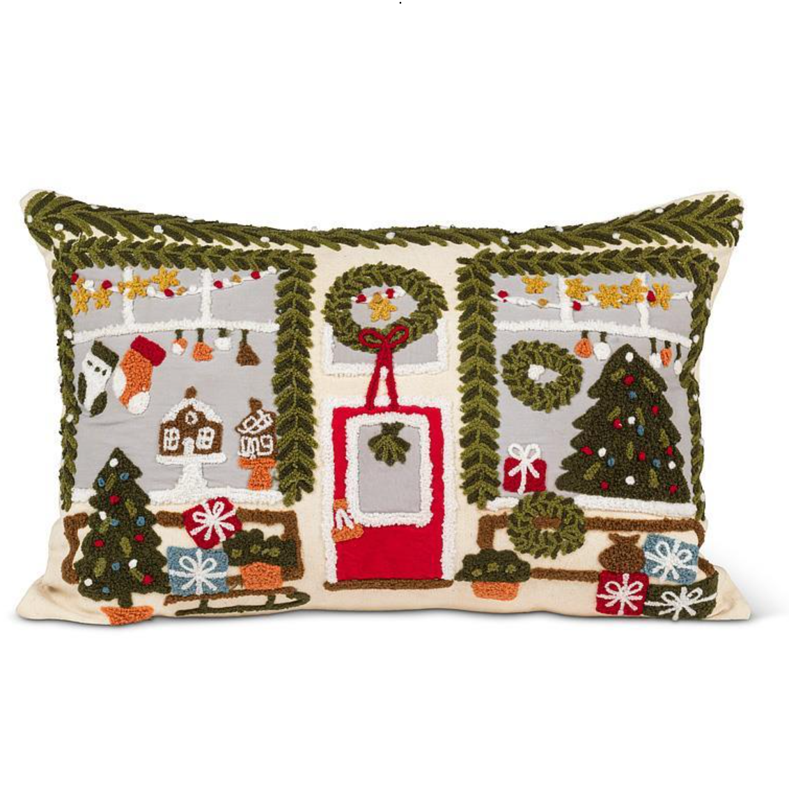 Featuring a charming festive storefront with all kinds of cool stitched details, this rectangular pillow brings the magic of holiday window-shopping to your sofa or couch.