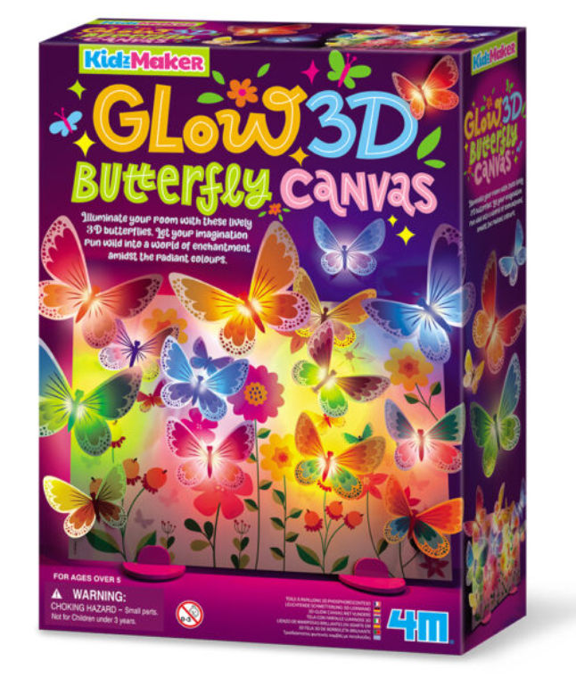 Glow 3D Butterfly Canvas kit lets kids create vibrant, glowing 3D butterflies to light up their rooms, inspiring creativity and wonder.