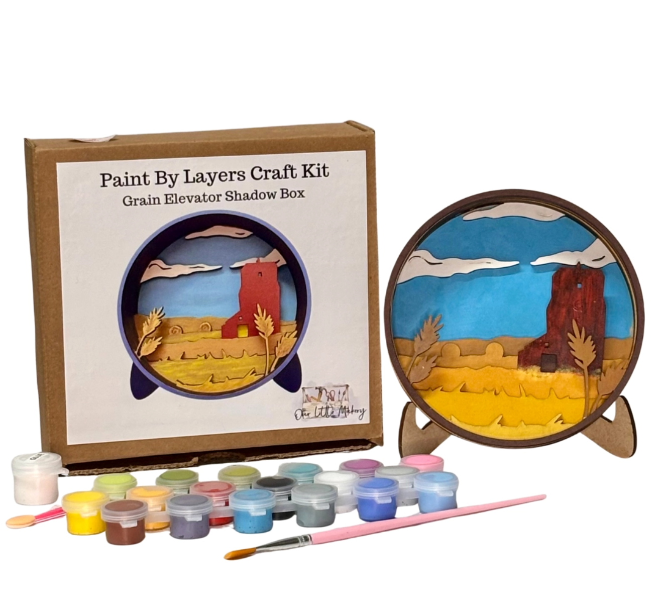 Celebrate the heart of the prairies with the Grain Elevator Shadow Box Kit, an Alberta-inspired scene showcasing a classic grain elevator rising above golden fields. A quiet tribute to the beauty of the Canadian countryside.