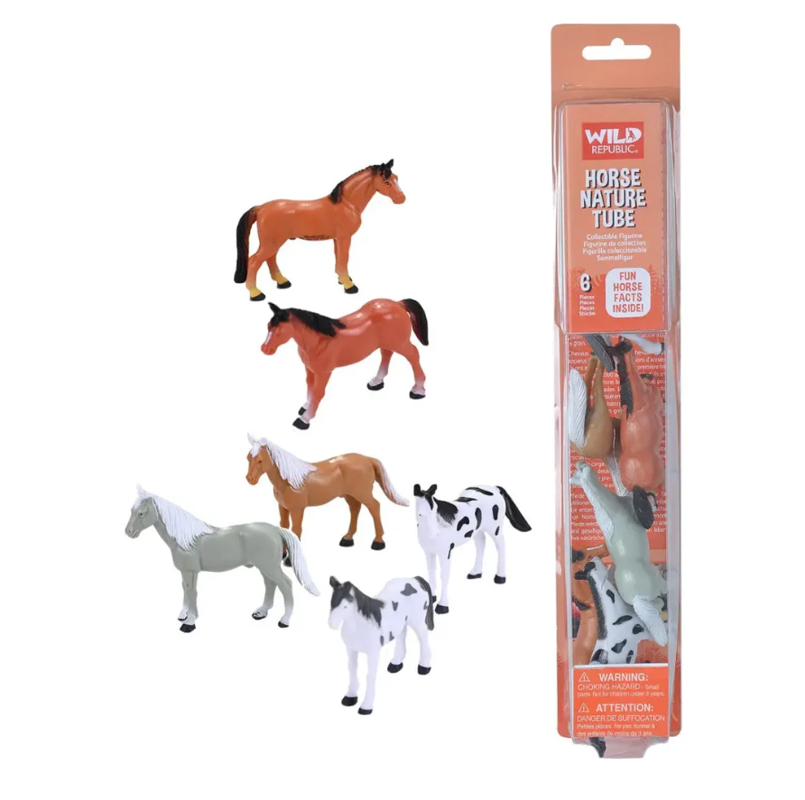 In this nature tube are six highly detailed, hand painted and durable horse figurines that are 2” to 3 1/2”. horses and humans have been by each other sides for about 5000 years. Now you can show your love and affection for your hoofed friends with this nature tube. All the figures are hand painted and made of Phthalate and lead-free materials. Excellent to make bath time more fun or in need of some travel toys to entertain the kids in the back of the car on a long or short trip. Do not forget the possible STEM (science, technology, engineering, and mathematics) implications that can be used at home or in the classroom.