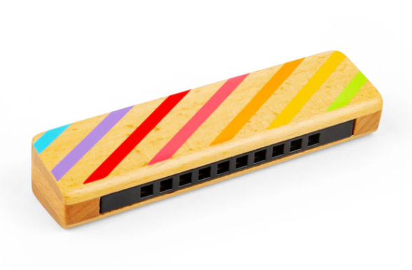 Learn how to belt out a blues-y tune with this Harmonica from Petit Collage! Encourage your little musician-in-the-making to develop their musical abilities by playing this classic instrument featuring jaunty stripes on one side and cheerful polkadots on the other. With a song sheet and instructions included, they’ll be blowing you away with their honky-tonk sound in no time! Perfect for ages 3+, this Harmonica is made with metal and FSC beech wood.
