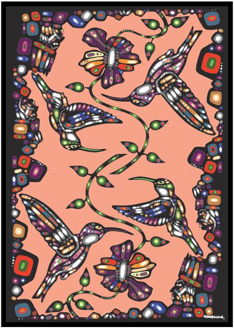 “Living in a fast pace, it flies from flower to flower, enjoying the freedom of the sky above. The ancestors are always happy to welcome the hummingbird back to the land.” – John Rombough