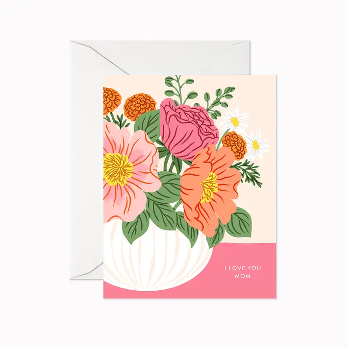 This cheerful card, featuring a bouquet of bright flowers, is the perfect way to send warm and loving wishes to Mom.