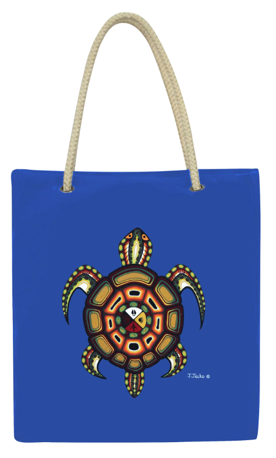 The Turtle is sacred in the indigenous culture. It carries the four colours of the medicine wheel, symbolizing important elements and can be different depending on the tribe. The seven circles represent the seven teachings of our people, and inside each circle is a bird that delivers the message of the creator.
