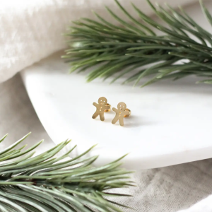 Mini Gingerbread Man Earrings (Gold) by Birch Jewellery