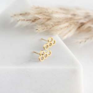 Mini Honeycomb Earrings (Gold) by Birch Jewellery
