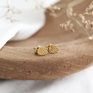 Mini Strawberry Earrings (Gold) by Birch Jewellery