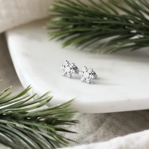 Mini Snowflake Earrings (Silver) by Birch Jewellery