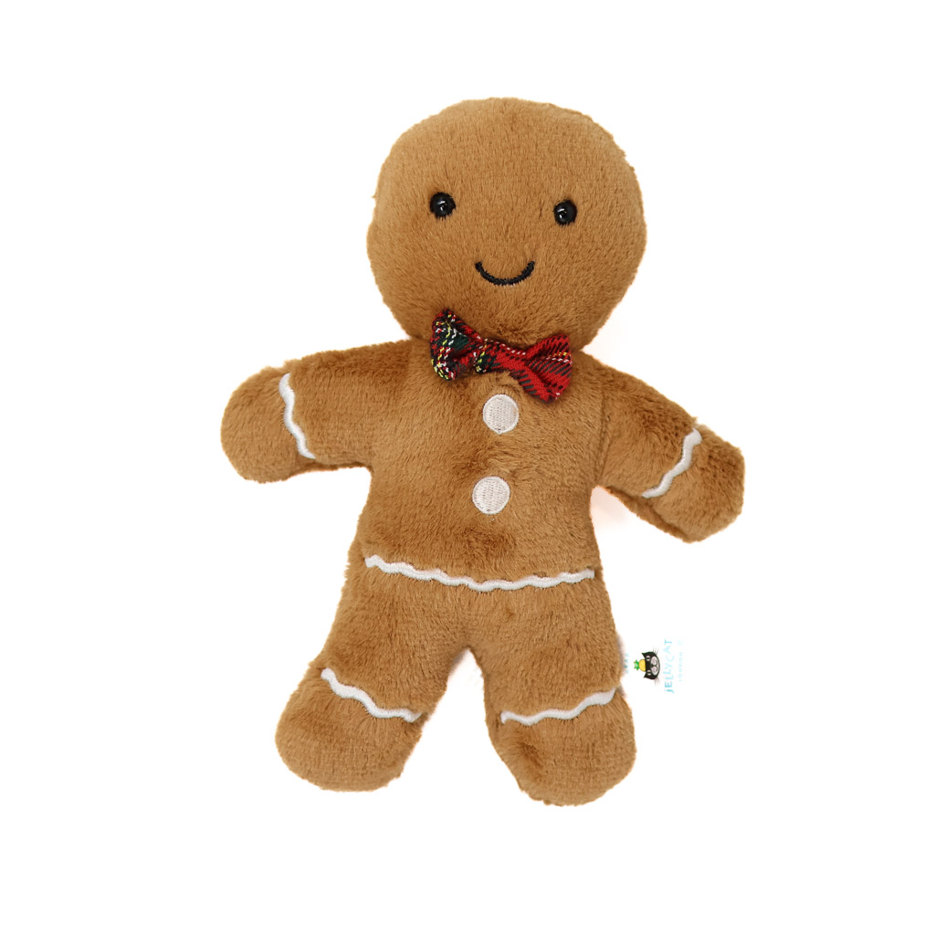 Jolly Gingerbread Fred may have hopped straight out of the tin, but this guy’s always looking smart! In soft golden biscuit fur with scalloped stitch icing, embroidered buttons and a red tartan bow, Fred is a forever festive friend!