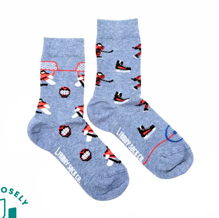 Game On! For the little hockey fan who eats, sleeps, and breathes the game! These mismatched hockey socks bring the action to their feet—because every day is a good day for a hat trick.