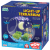 Get growing and glowing with this Light-Up Terrarium by Thames & Kosmos! Make your own awesome glowing terrarium with real plants. Use the included cress seeds and growing containers to create your own plant display and observe as the seeds germinate and grow. Decorate your terrarium with glowing materials like glow-in-the-dark stars and glowing plastic pebbles, as well as some faux plants. At night, your terrarium will light up a room when the included UV LED string lights (like blacklights) shine on the phosphorescent materials and make them glow.