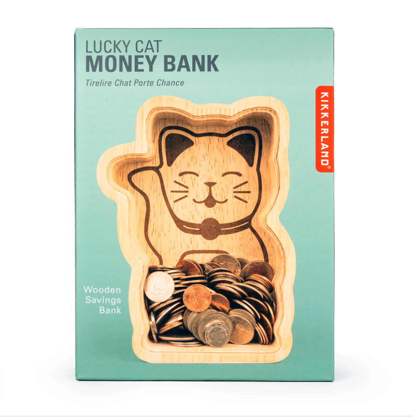 This wooden money bank shaped like a lucky cat or maneki-neko, is thought to bring good fortune to its owner in Japanese tradition.