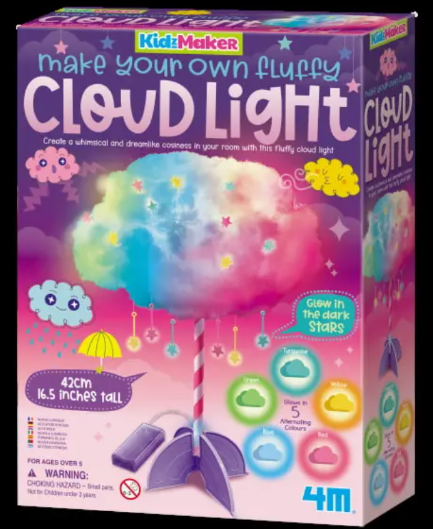 This delightful DIY project allows children to create a whimsical fluffy cloud light that glows in the dark, in 5 alternative colours, transforming their rooms into a magical wonderland. The kit includes synthetic fibers, an LED light string, glow-in-the-dark star pins, and more. Assembled, it stands 42 cm (16.5 inches) tall and features enchanting glow-in-the-dark stars. A crosshead screwdriver and 2x 1.5V AA batteries are required (not included).