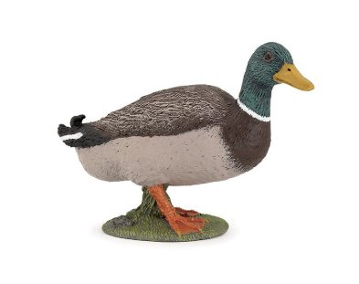 The Papo mallard duck figurine is a delightful representation of this beloved waterfowl species. Its brilliant green head with a yellow beak really pops and catches the eye. The bright orange feet are also a standout feature that adds a touch of vibrancy to the overall appearance of the figurine.