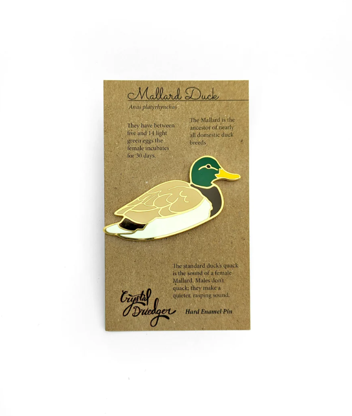 Meet our male Mallard! He’s delightfully camouflaged and happy to be showy or subtle on your lapel!