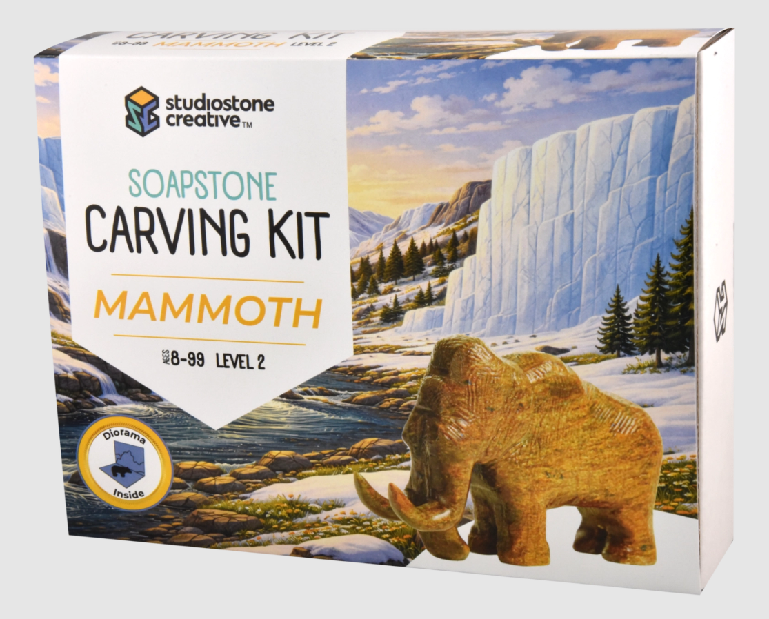 Carve your own soapstone wooly mammoth with our eco-friendly carving kit—perfect for kids 8+ and adults alike. This hands-on, five-step activity brings creativity, relaxation, and a deeper connection to nature into your home.
