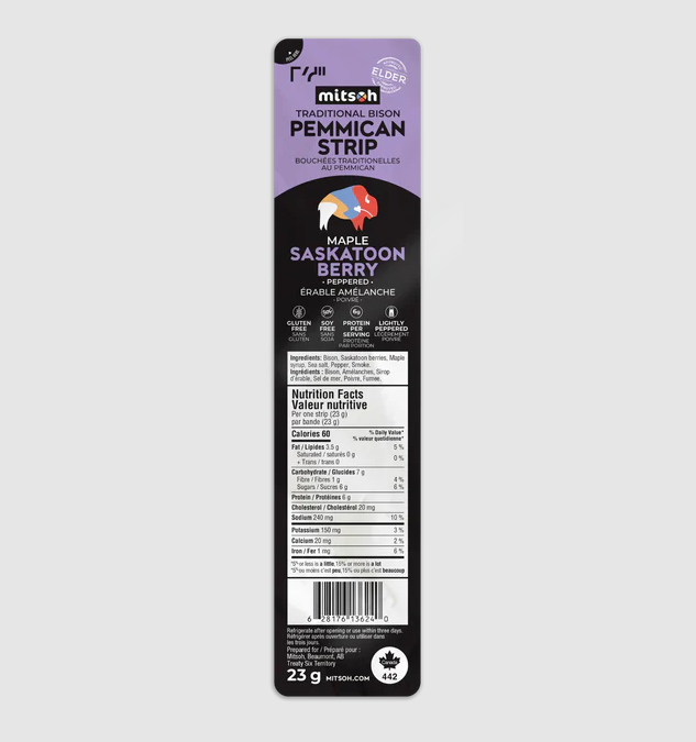 The whole food ingredients are simple: Bison, Saskatoon berries, Pure Maple Syrup, Sea Salt and Pepper. That’s it!