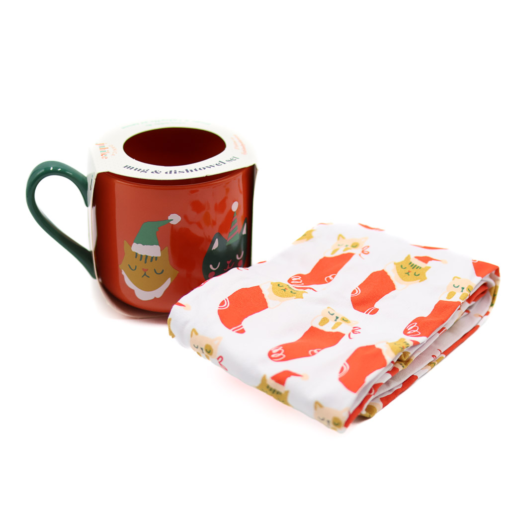 Meowy Christmas Mug & Tea Towel Set by Danica
