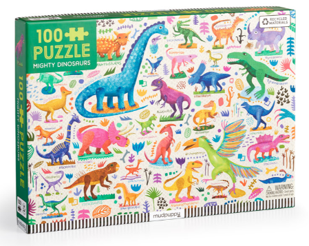 Mighty Dinosaurs 100 PIECE PUZZLE – Embark on a thrilling prehistoric adventure with Mudpuppy’s captivating Dinosaur 100-Piece Puzzle! Designed especially for young paleontologists, this puzzle features a variety of dinosaurs, each one labeled for easy identification and learning. The large, easy-to-handle pieces are perfect for children ages 5 and up. Join us on a voyage of discovery as we unravel the mysteries of the prehistoric era, one puzzle piece at a time!