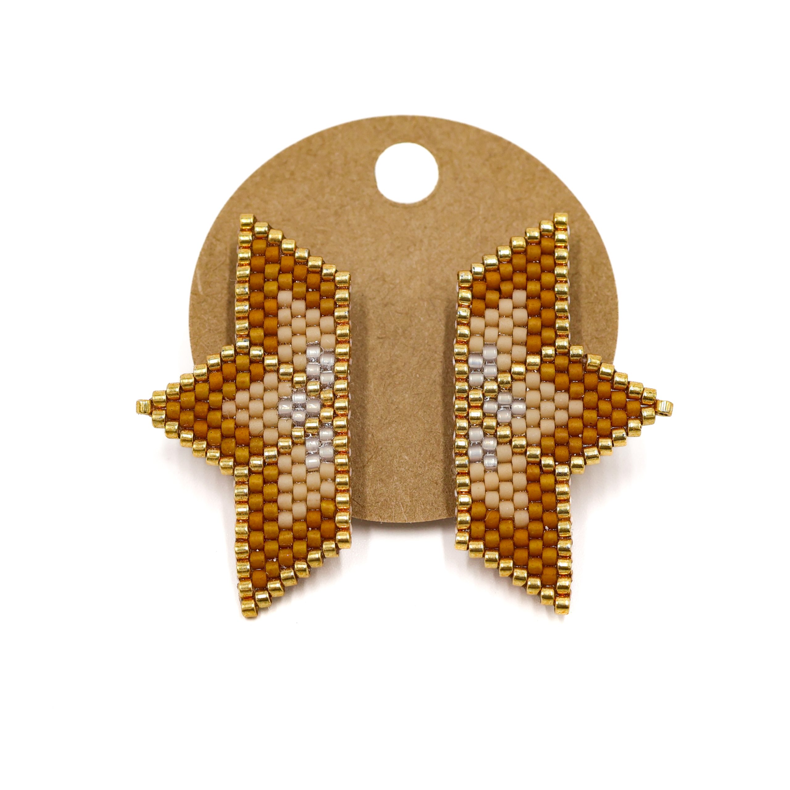 These Mini Beaded Star Stud Earrings – Gold by River City Rustic are Chelsea’s design and are a labour of love. Each Star Earring is unique, and care and attention go into selecting each colour and bead used.