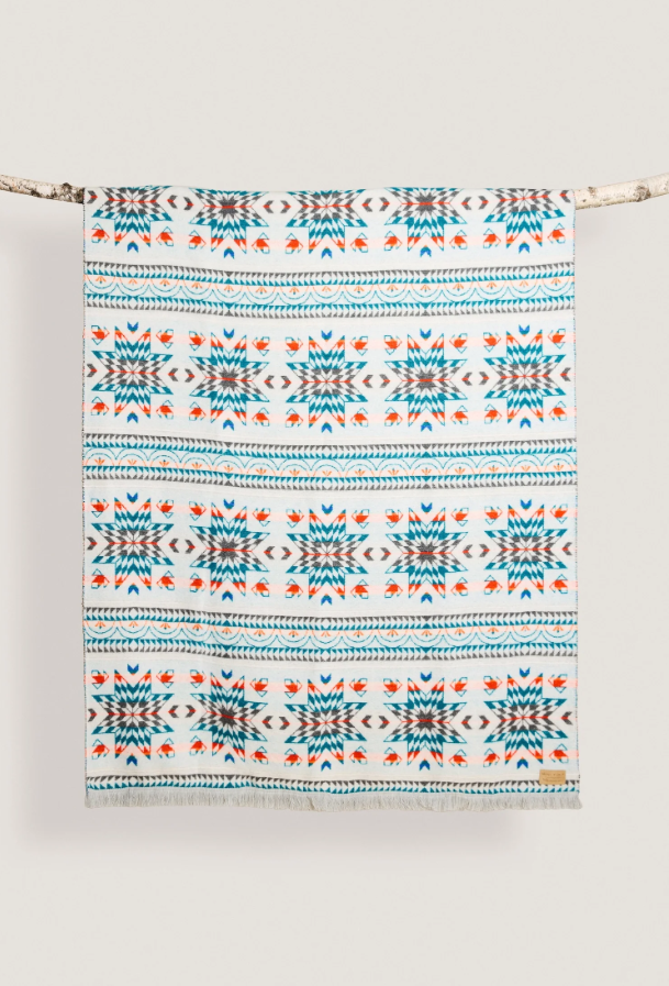 This eco-friendly everyday blanket is made from sustainable fabric woven in Italy. It’s perfect for family picnics, camping, getting cozy around the campfire and is made large enough for a queen size bed or a throw blanket. The warm and luxurious wool/acrylic/polyester blend makes them soft, yet washable. The trim adds a beautiful finish.
