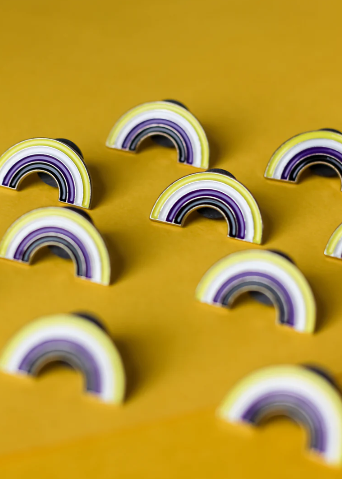 Showing off Non-Binary pride with this cute LGBTQ+ rainbow pin!