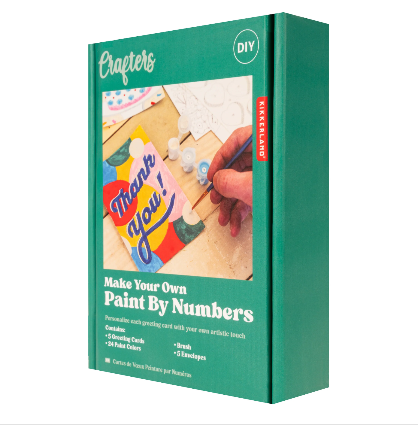 Personalize your greetings with this set of 5 paint-by-numbers cards, 24 paints, brush, and envelopes included.