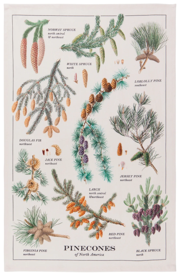 Add life and character to your kitchen with our colorful printed and woven cotton Pinecones Tea Towel by Danica.