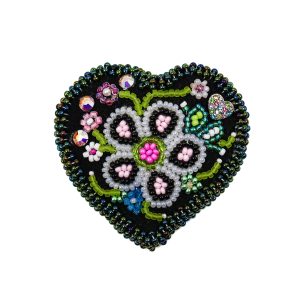 “Moth Wing” Beaded Heart Brooch by Connie Kulhavy