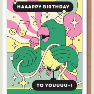 Singing Parrot Birthday Greeting Card by Épée Lapin Studio