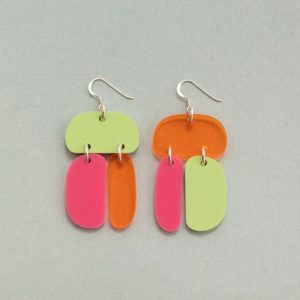 Remixed Ovoid Trio Earrings in Green/Pink/Orange by Warren Steven Scott