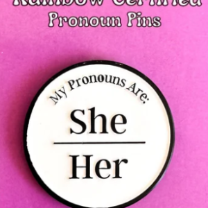 She – Her Pronoun Pins by Rainbow Certified