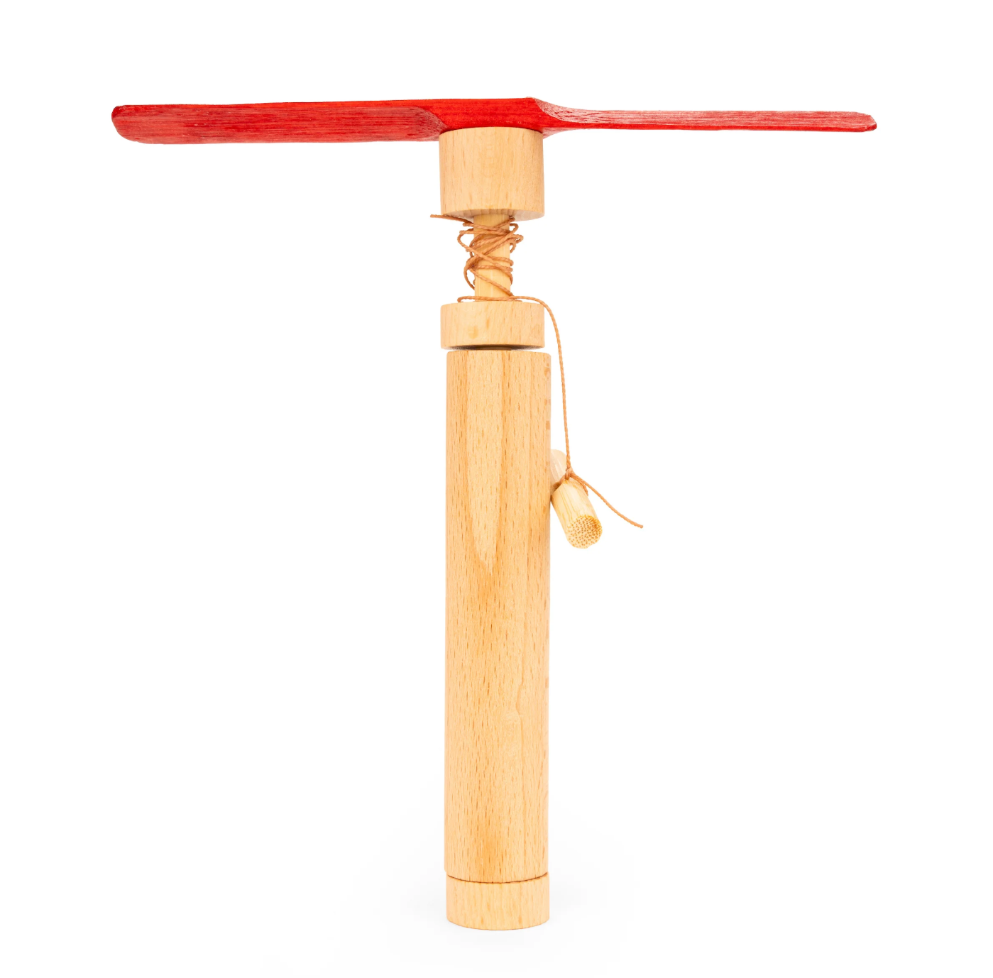 Watch this helicopter go flying! Simply wind the launcher clockwise and quickly pull to release the helicopter.