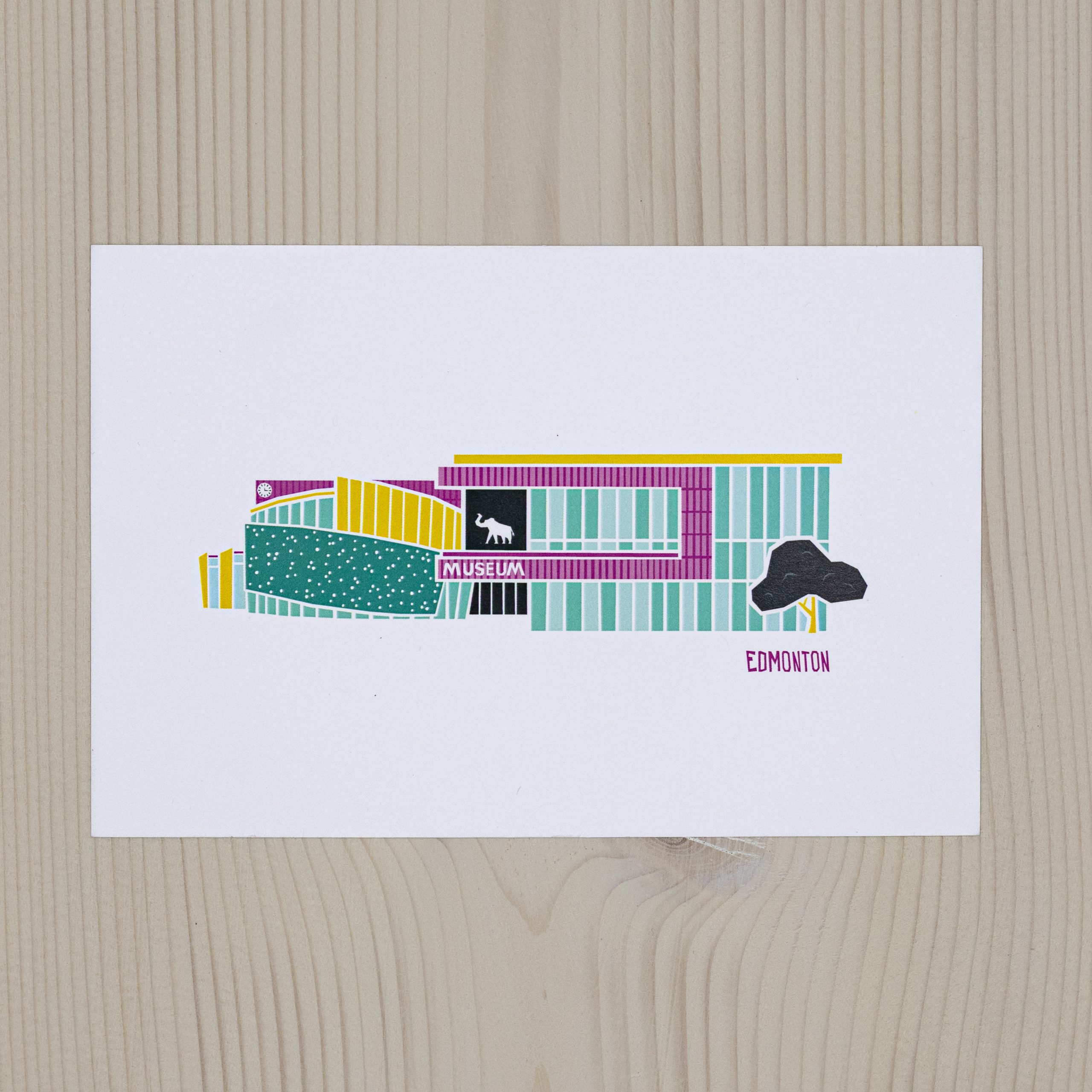 This very special post card depicts the Royal Alberta Museum as it is currently: with it’s modern structure, clean aesthetic and central downtown Edmonton.